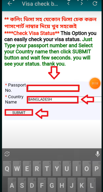 • Enter “Passport Number“, “Country Name” & click on “Submit Button“.